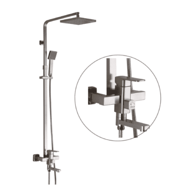 - Bộ vòi sen tắm đứng được sản xuất từ đồng thau đúc nguyên khối, kết hợp thép không gỉ cao cấp. Công nghệ mạ tân tiến chống bay màu, sáng bền trong mọi điều kiện thổ nhưỡng.